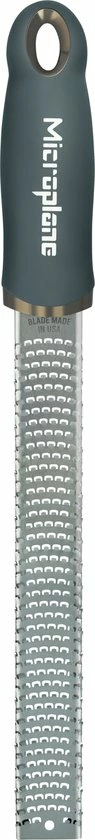 Microplane Rasp Premium Classic After Dark GreyDe Microplane Premium Rasp Classic After Dark Grey is perfect voor het raspen van citrusvruchten, harde kaas, chocolade, kaneel, ui, knoflook en gember. De rasp is gemaakt van 18/10 roestvrij staal met vlijmscherpe randen en vlijmscherp gelaserd bladoppervlak. De rasp heeft een ergonomische softgrip greep, waardoor hij makkelijk in de hand ligt en is tussentijds af te schermen met een kunststof beschermkap. Ook heeft de greep een mooie donkergrijze kleur. Na gebruik kan de rasp eenvoudig gereinigd worden in de vaatwasser.