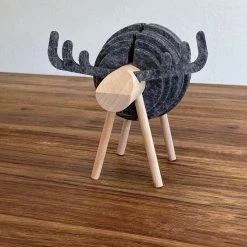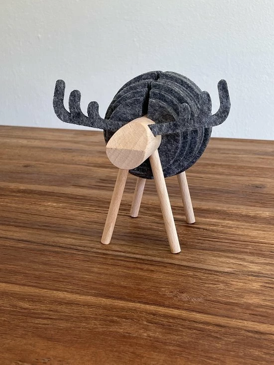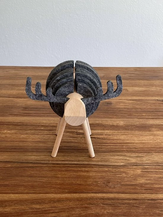 Houten rendier XL met 12 stuks ronde vilten onderzetters.