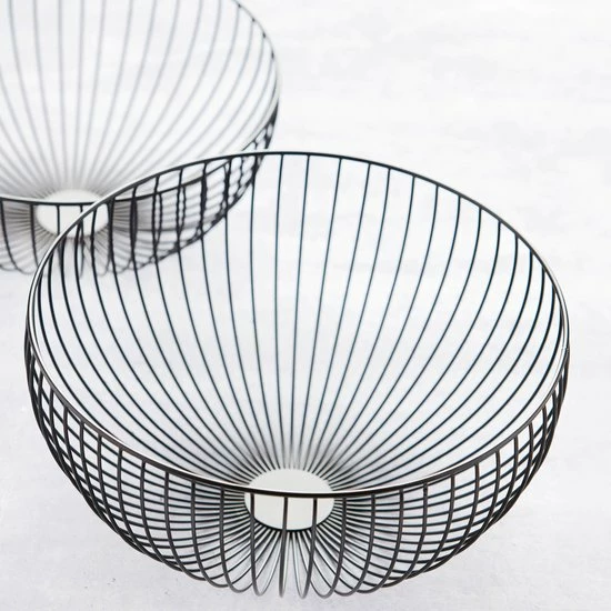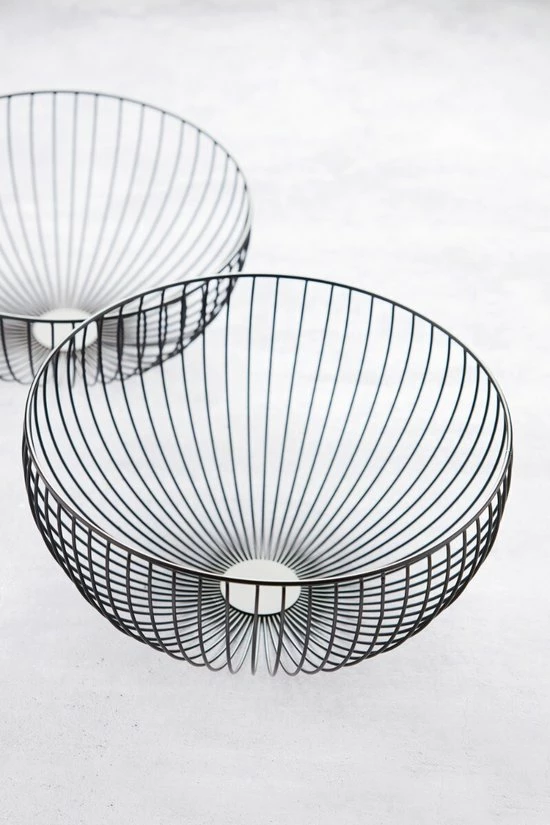 De Wire collectie van Point-Virgule omvat strak, gestroomlijnde interieuraccessoires vervaardigd uit duurzame carbonstaaldraad en afgewerkt met hoogwaardige, matte zwarte lak. Fruitschalen, theelichthouders, manden en keukenhulpjes krijgen door een sierlijke vormgeving en aparte materiaalkeuze een luchtig en rustig silhouet.