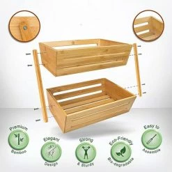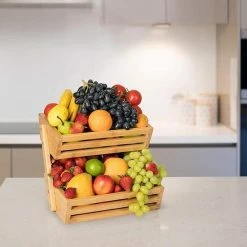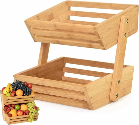 Deze fruitmand is gemaakt van duurzaam bamboehout, waardoor hij erg stevig is.