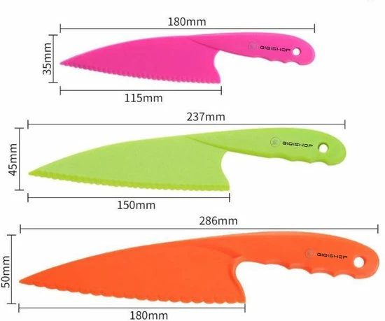 · Geschikt voor groente en fruit – De kindermessen kunnen voor het snijden van vrijwel ieder stuk groente en fruit gebruikt worden. Daarnaast kunnen de messen ook gebruikt worden voor het snijden van andere etenswaren zoals stokbrood.