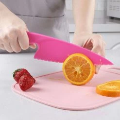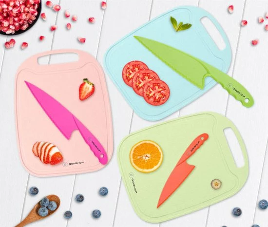· Vrolijke kleuren – Zowel de messen als de snijplank zijn voorzien van vrolijke kleuren. Dit maakt de kindermessenset extra aantrekkelijk en leuk om mee te leren koken.