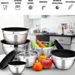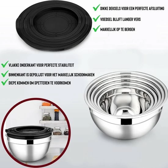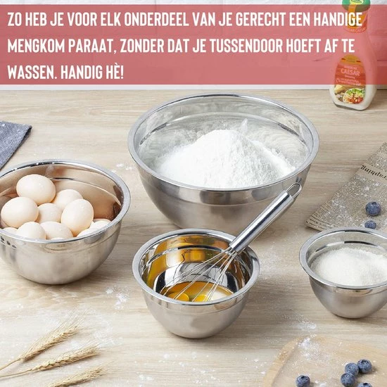 - Hoogste kwaliteit RVS: gemaakt van RVS 304, dit is de hoogste kwaliteit RVS die er is. De beslagkommen zijn duurzaam en BPA-vrij en dus veilig te gebruiken voor het klaarmaken van je eten.