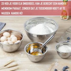 - Complete set: multifunctioneel inzetbaar als bijvoorbeeld beslagkom, mengkom en serveerkom. Daarnaast heb je met deze set een ruime keuze aan formaten.