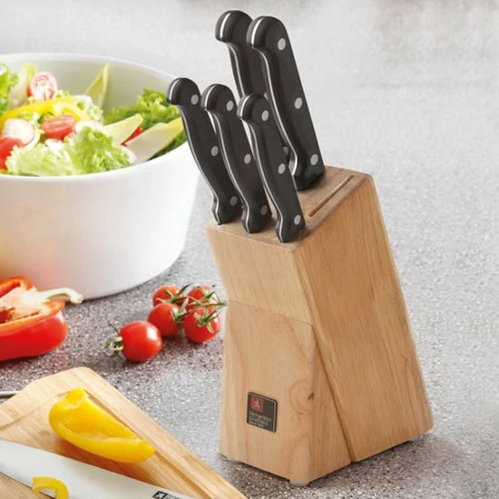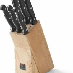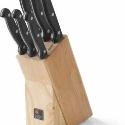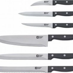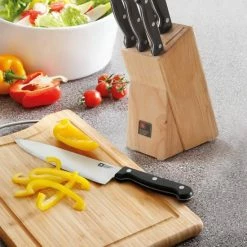 Deze keukenmessenset bevat 6 messen met zachte en anti-slip lemmeten voor eenvoudig gebruik. Bovendien heeft hij ook een ruimtebesparend opbergblok. De messen zijn vervaardigd met geavanceerde lasertechnologie waardoor ze lang scherp blijven, zelfs bij dagelijks gebruik.