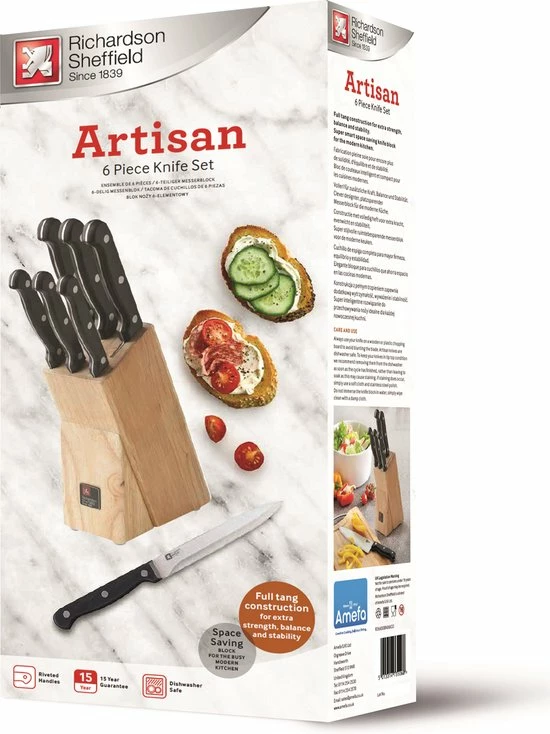 Met het keukenmessenblok Artisan met massief houten blok van Richardson Sheffield, heb je alles bij de hand, en een beetje meer ruimte op je keukenblad.