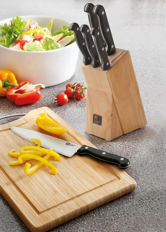 - Huishoudmes: met 12,5 cm lemmet voor het snijden van vlees, groenten en brood.