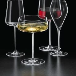 De gehele serie bestaat uit 5 verschillende soorten wijnglazen, 2 water/frisdrankglazen, 1 shot glas en zijn perfect te combineren voor een zeer stijlvolle tafelschikking. Door de ronding van de kelk, rolt de wijn perfect door het glas.