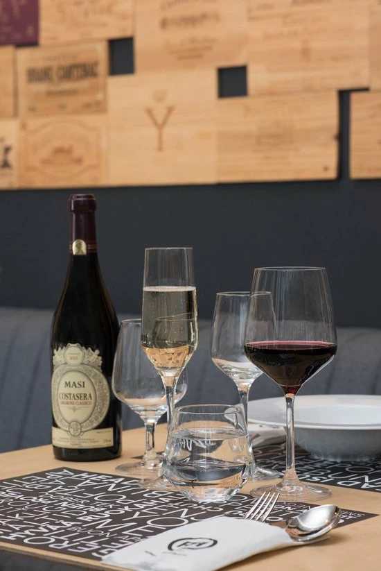 De gehele serie bestaat uit 12 verschillende soorten wijnglazen, water/frisdrankglazen, shot glas, cocktailglazen en zijn perfect te combineren voor een zeer stijlvolle tafelschikking. Door de ronding van de kelk, rolt de wijn perfect door het glas.