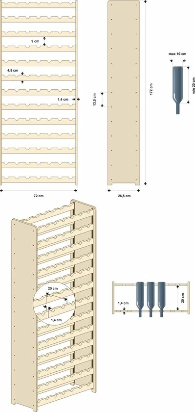 De planken zijn ideaal voor de woonkamer, pantry, kelder, garage en ook voor de wijnwinkel. Ideaal als cadeau of gewoon een “must” voor iedere wijnliefhebber. De wijnrekken zijn erg praktisch en houden de collectie wijnen veilig voor elke gelegenheid.