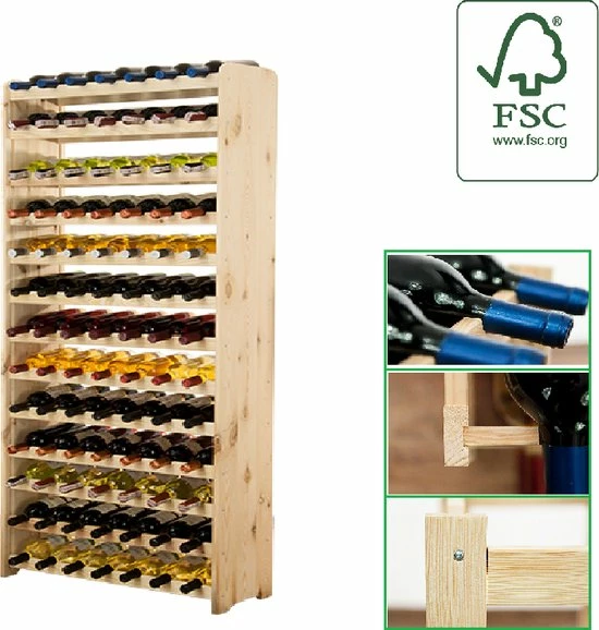 SMH LINE – Wijnrek – 164x70x24,7cm (LxBxD)- Bottle Rack – Hout – 12 flessen Flessenrek Modulair en Stapelbaar – Flessenhouder Staand