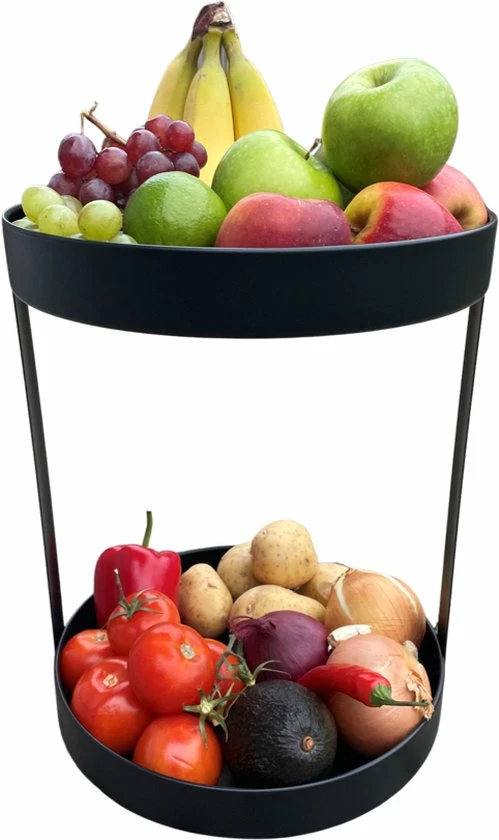 Deze blikvanger bestaande uit twee étages zorgt ervoor dat je jouw fruit en groenten OF verschillende fruitsoorten gescheiden kan houden. Een wist-je-datje, bananen zorgen ervoor dat de rijping van omliggend fruit wordt versneld.