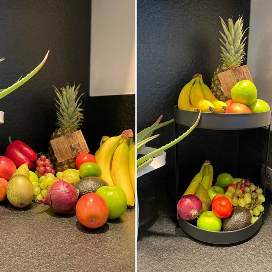 Roteerbare, zwarte fruitschaal met 2 etages dat multifunctioneel is en past in elk interieur!