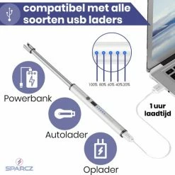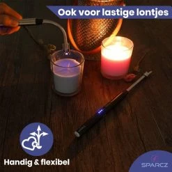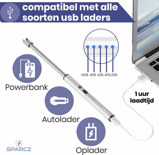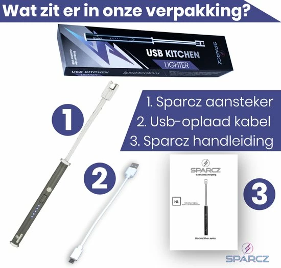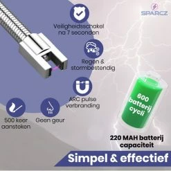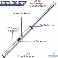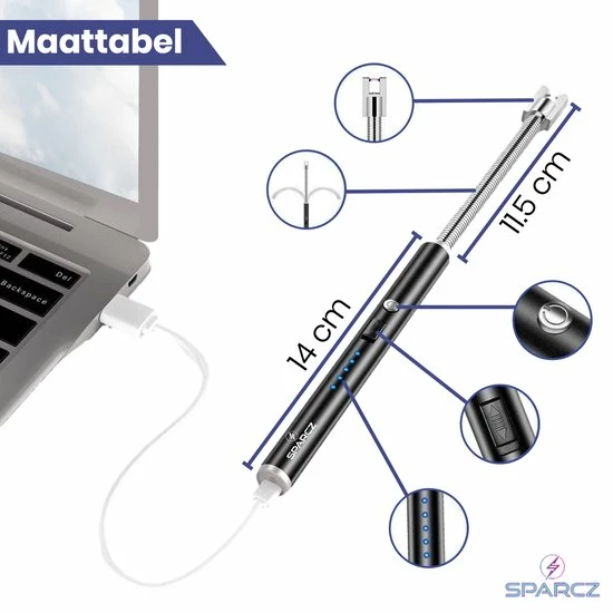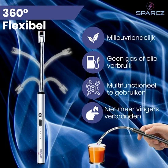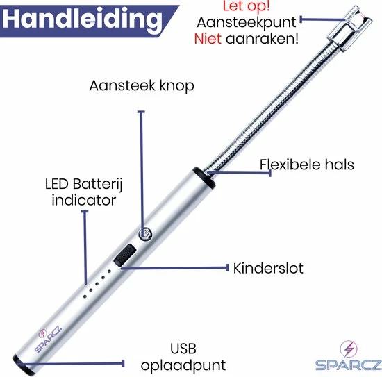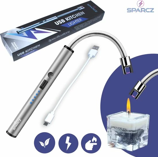 Geen lastig gedoe meer tijdens het bijvullen met butaangas wat niet voor iedereen geschikt is.Omdat je deze aansteker kunt opladen hoef je de aansteker niet meer weg te gooien , wat deze aansteker Eco-duurzaam maakt.Weg met het gebruik van lucifers , hiermee kan je namelijk jezelf ook nog eens pijn doen.Met de flexibele lange hals van de SPARCZ kom je gemakkelijk op lastig te bereiken plaatsen zoals bij het aansteken van een kaars of fornuis.Het opladen via USB is duurzamer en ook nog eens milieuvriendelijker gebleken .En in het handvat zit een handige batterij indicator verwerkt die gaat knipperen wanneer de batterij vol is van het laden.Kinderslot is inbegrepen in het handvat.