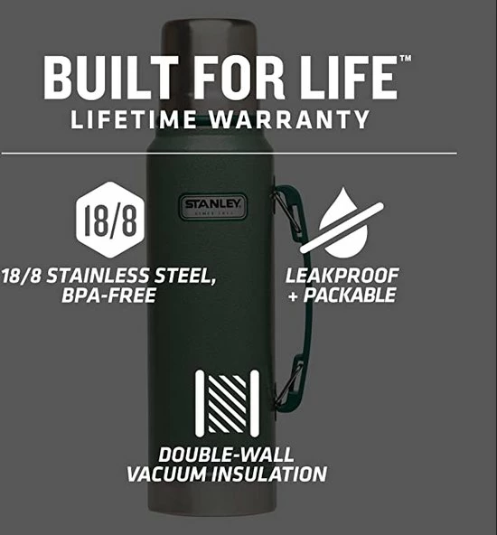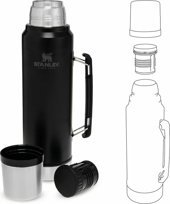 Altijd en overal je warme en koude dranken bij de hand!Een dagje vissen aan het meer of een hike door de bergen. Bij dit soort activiteiten mag een praktische thermosfles die jouw drankje op de juiste temperatuur houdt niet ontbreken. De Stanley Classic 1 liter Thermosfles is robuust waardoor hij tegen een stootje kan. De fles is compact en voorzien van een handvat, zodat jij je drankje zonder morsen kan inschenken. Bovendien is de thermosfles voorzien van een dubbele wandconstructie. Hierdoor blijven warme dranken tot wel 28 uur warm en koude dranken 28 uur lang koel. Je kunt zowel de dop als de fles na gebruik in de vaatwasmachine reinigen.