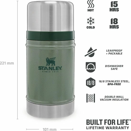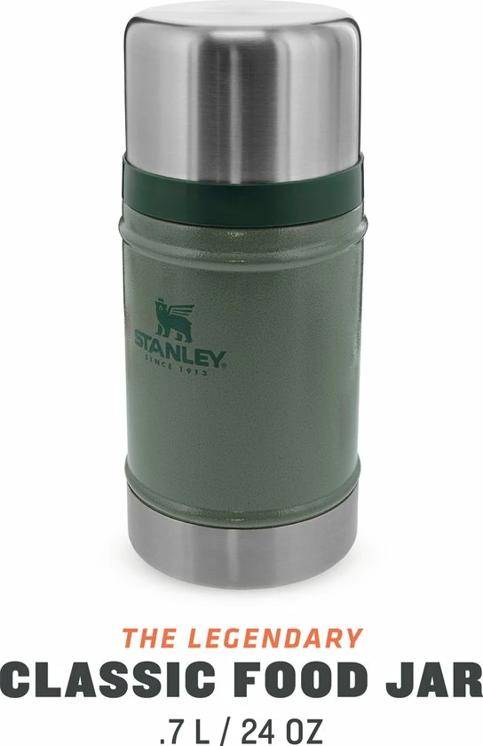 Stanley Classic Legendary Food Jar 0.7L / 24OZ Hammertone Green โ Lunchbox houdt 15 uur warm, 18 uur koud | Levenslange garantie | Deksel is ook kom | Lekvrij | BPA-vrij | Vaatwasserbestendig