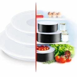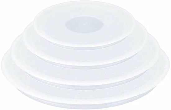 De deksels zijn stapelbaar zodat ze bijna geen ruimte in beslag nemen.
