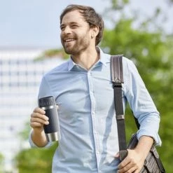 De nieuwe, extra makkelijke te openen draaidop is snel en intuïtief dicht te draaien voor bijvoorbeeld het bijvullen bij je favoriete koffiezaakje.
