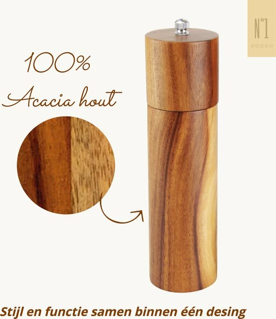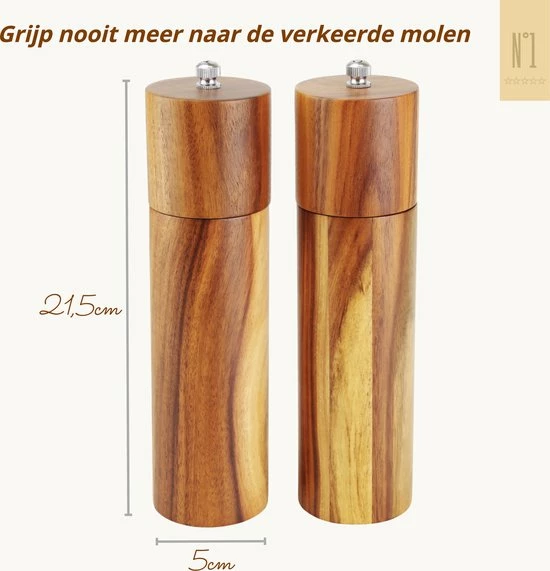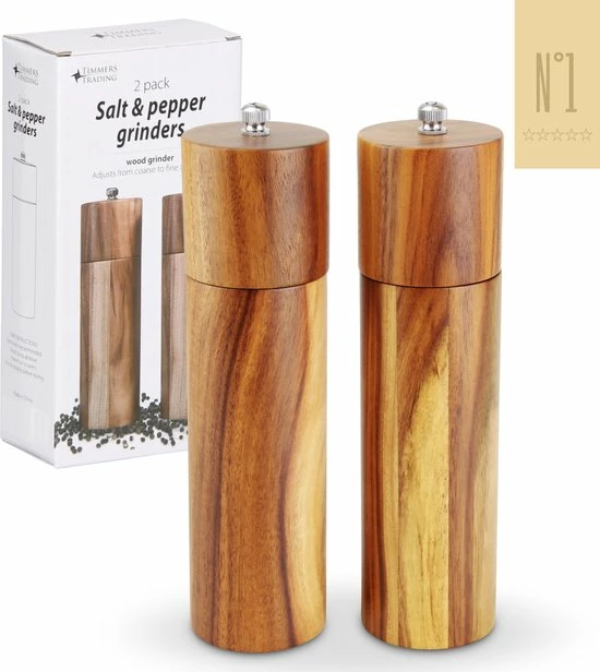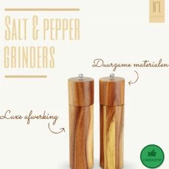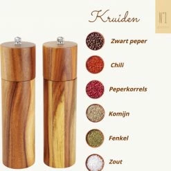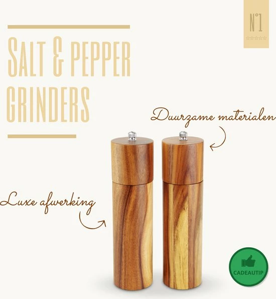 Een mooie finishing touch voor op tafel. Een luxe peper en zoutmolen set gemaakt van Acaciahout!