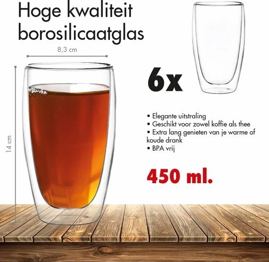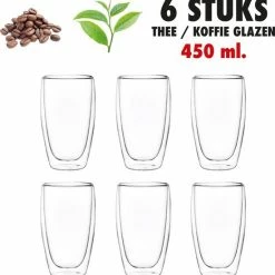 | Verpakkingsinhoud | 6x, Dubbelwandige, Koffieglazen, 450, ml |