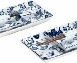 Tokyo Design Studio Flora Japonica Sushi Plate Set W/Giftbox And Chop 4pcs