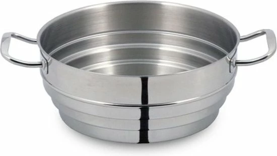 Een stoominzet van RVS geschikt voor kookpannen met een diameter van 16, 18 en 20 cm en ook te gebruiken als vergiet. Deze stoominzet is geheel vaatwasser bestendig en dus gemakkelijk weer schoon te maken. Je kan het stoominzet niet direct op een warmtebron plaatsen, het moet altijd in combinatie met een kookpan gebruikt worden, voordat deze op een warmtebron geplaatst word.