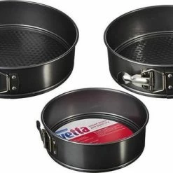 De springvormen zijn voorzien van een PFOA vrije anti-aanbaklaag waardoor de levensduur wordt verlengt. De set bevat bevat 3 springvormen met de maten 20, 22 en 24 centimeter in doorsnede.