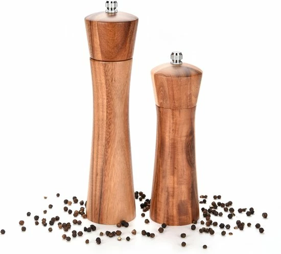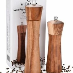 Op zoek naar een mooi peper en zoutmolen set voor jezelf of als cadeau? Steel de show met deze stijlvolle set van VITAMO. Deze molens (niet elektrisch) zijn gemaakt van robuust acaciahout voor een luxe uitstraling. Ook zijn deze voorzien van keramische maalschijven zodat je allerlei specerijen optimaal kunt vermalen en er jarenlang plezier van zult hebben.