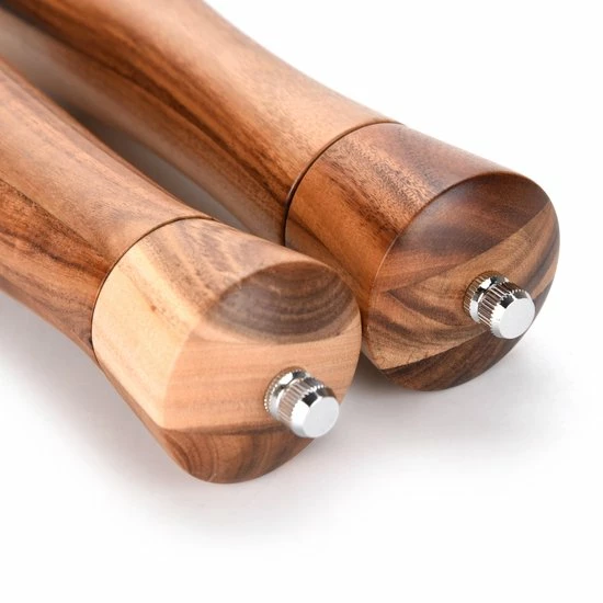 Dit peper en zoutstel is gemaakt van hoogwaardig acaciahout en mooi afgewerkt. Het heeft een tijdloos ontwerp en is duurzaam door het keramisch maalwerk.