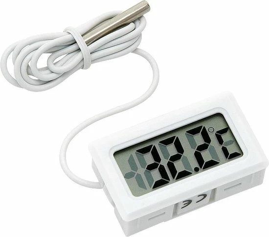 Deze thermometer combineert een digitaal LCD display met een 1 meter lange waterdichte temperatuursonde met een meetbereik van -50°C ~ +70°C graden celsius.