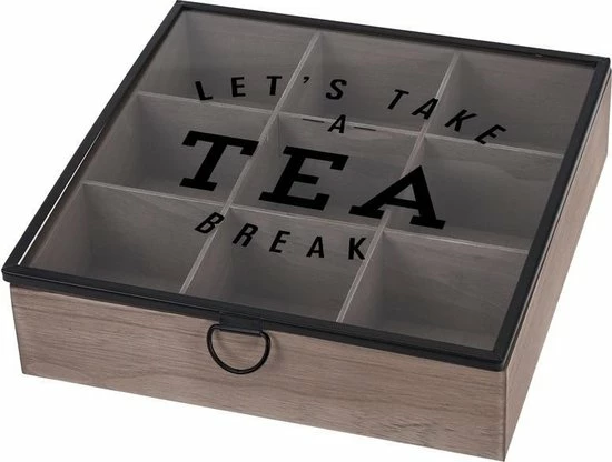 Stoere theedoos met 9 vakken om verschillende soorten thee overzichtelijk op te bergen