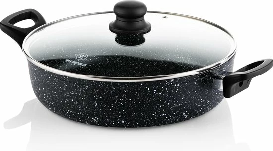 De Westinghouse Zwart Marmer Hapjespan 28cm mag niet ontbreken aan jouw pannencollectie. De hapjespan is ideaal voor het bereiden van bijvoorbeeld eenpansgerechten, een lekkere risotto, paella of een heerlijke pastasaus. De pan is gemaakt uit aluminium en licht in gewicht. Zo verplaats je de hapjespan gemakkelijk van de warmtebron rechtstreeks naar de tafel.