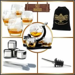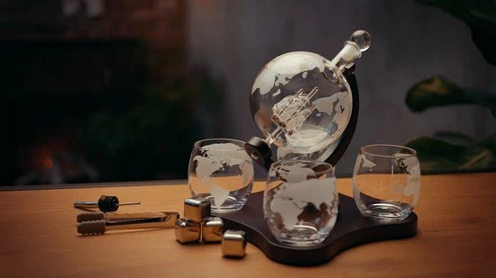 Begin jouw whiskey avontuur nog voor de eerste slok met deze unieke whiskey karaf. Deze wereldbol karaf van Whisiskey is met zijn luxe en chique uitstaling de eyecatcher die jouw interieur verdient. Daarnaast is deze whiskey karaf set van hoogwaardig handgeblazen glas met unieke details het ideale cadeau voor de whiskey liefhebber!