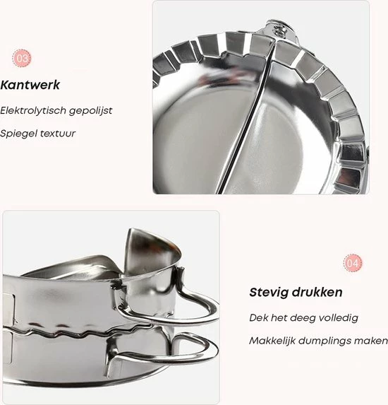 - Multifunctioneel: pasteitjes, Chinese dumplings, Europese appelflapjes, Italiaanse Ravioli of Calzone, Mexicaanse empanadas, japanse Gyoza, poolse pierogi, Pot stickers, Engelse pie, boheemse knoedels